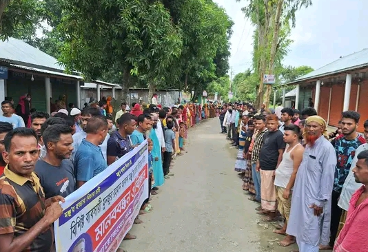 গাইবান্ধা প্রতিনিধি: গাইবান্ধার সাঘাটা উপজেলার কচুয়া ইউনিয়নের কচুয়া গ্রামের মৃত ইউসুফ আলীর ছেলে বিশিষ্ট ব্যবসায়ী মঞ্জুরুল ইসলাম মনজুর হত্যাকারীদের গ্রেফতার ও আইনগত ব্যবস্থা গ্রহণের দাবীতে মঙ্গলবার ২৬ আগষ্ট দুপুরে স্থানীয় আকন্দের মোড়ে এলাকাবাসীর আয়োজনে এক মানব বন্ধন ও বিক্ষোভ অনুষ্ঠিত হয়েছে।মানব বন্ধনে বক্তব্য রাখেন নিহত মঞ্জুর বড় ভাই মশিউর রহমান, নিহতের স্ত্রী তাসনিমা, এতিম মেয়ে তমা সহ অন্যান্যরা।