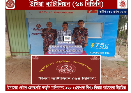 উখিয়ায় বিজিবির অভিযানে ১২০ ক্যান বিয়ারসহ আটক ১