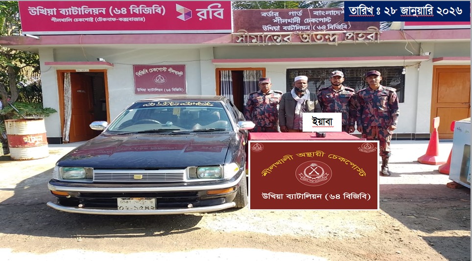 কক্সবাজারের টেকনাফ উপজেলার শীলখালীতে প্রাইভেটকারযোগে ইয়াবা পাচারের সময় ৪ হাজার পিস ইয়াবা ট্যাবলেটসহ এক চালককে আটক করেছে বর্ডার গার্ড বাংলাদেশ (বিজিবি)। বুধবার (২৮ জানুয়ারি) সকাল আনুমানিক ৯টা ২০ মিনিটে উখিয়া ব্যাটালিয়ন (৬৪ বিজিবি) শীলখালী অস্থায়ী চেকপোস্টে এ অভিযান পরিচালনা করে। আটক ব্যক্তি টেকনাফ উপজেলার গোদার বিল গ্রামের বাসিন্দা মৃত রমজান আলীর ছেলে মোঃ জাহেদ হোসেন পুতু (৬৩)। উখিয়া ব্যাটালিয়ন (৬৪ বিজিবি)-এর অধিনায়ক লেফটেন্যান্ট কর্নেল মোঃ জহিরুল ইসলাম, জি বিষয়টি নিশ্চিত করে জানান, গোপন সংবাদের ভিত্তিতে টেকনাফ থেকে কক্সবাজারগামী একটি যাত্রীবাহী প্রাইভেটকার চেকপোস্টে থামিয়ে তল্লাশি চালানো হয়। এ সময় গাড়িটির ইঞ্জিনের নিচে লুকানো অবস্থায় কালো পলিথিনে মোড়ানো একটি পোটলা থেকে ৪ হাজার পিস ইয়াবা ট্যাবলেট উদ্ধার করা হয়। তিনি জানান, ইয়াবা পরিবহনের কাজে ব্যবহৃত প্রাইভেটকারটি জব্দ করা হয়েছে। প্রাথমিক জিজ্ঞাসাবাদে আটক চালক স্বীকার করেছেন, তিনি টেকনাফ থেকে ইয়াবা সংগ্রহ করে কক্সবাজারে বেশি দামে বিক্রির উদ্দেশ্যে নিয়ে যাচ্ছিলেন। বিজিবি অধিনায়ক আরও জানান, মাদক সরবরাহকারী ও সংশ্লিষ্ট চোরাকারবারিদের শনাক্ত করতে গোয়েন্দা নজরদারি জোরদার করা হয়েছে। উদ্ধারকৃত ইয়াবা, জব্দকৃত গাড়ি এবং আটক আসামির বিরুদ্ধে আইনগত ব্যবস্থা গ্রহণ করে টেকনাফ থানায় হস্তান্তরের প্রক্রিয়া চলমান রয়েছে। তিনি বলেন, সীমান্ত নিরাপত্তার পাশাপাশি মাদক ও চোরাচালান প্রতিরোধে বিজিবি কঠোর অবস্থানে রয়েছে এবং এ ধরনের অভিযান ভবিষ্যতেও অব্যাহত থাকবে।উল্লেখ্য, কক্সবাজার রিজিয়নের রামু সেক্টরের অধীন উখিয়া ব্যাটালিয়ন (৬৪ বিজিবি) দীর্ঘদিন ধরে সীমান্ত সুরক্ষা ও মাদকবিরোধী অভিযানে ধারাবাহিক সাফল্য অর্জন করে আসছে, যা টেকনাফ ও উখিয়াবাসীর মাঝে স্বস্তি ও আস্থা সৃষ্টি করেছে।
