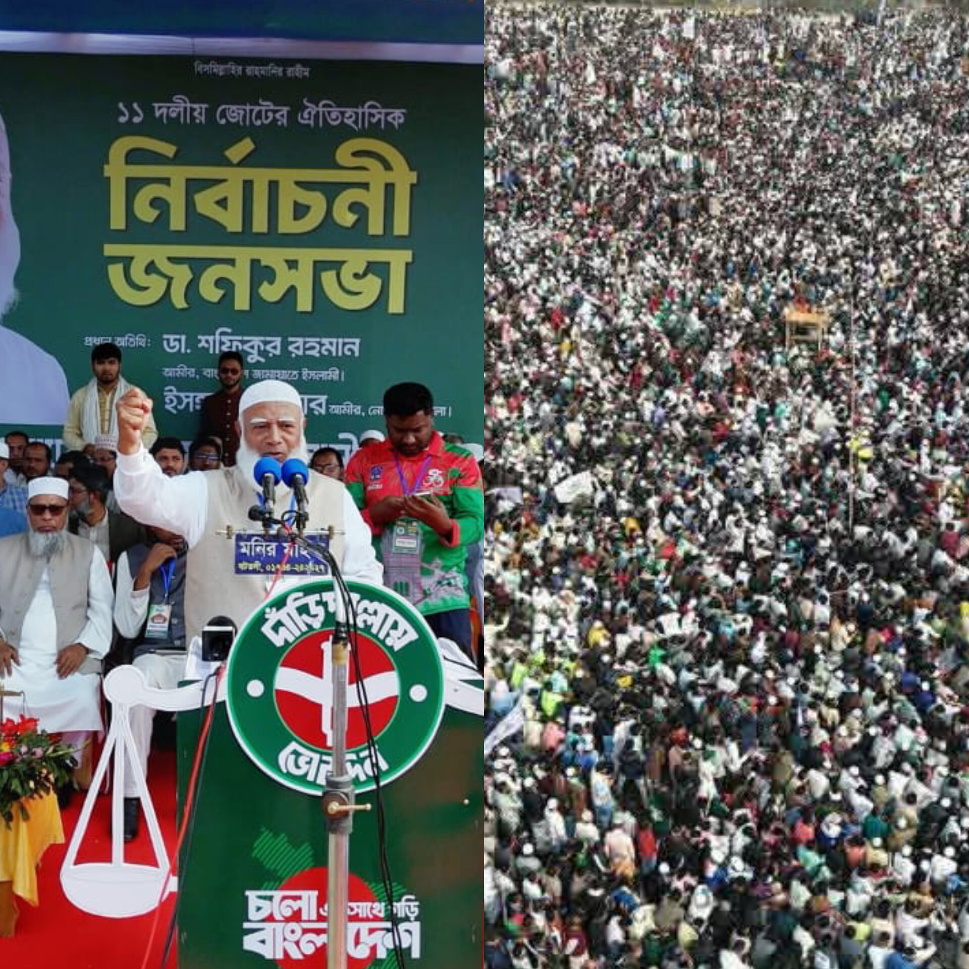আজ সকাল ৯টায় ১১দলীয় ঐক্য জোটের উদ্যোগে নোয়াখালী জেলা স্কুল মাঠে জনসভা অনুষ্ঠিত হয়। তিনি বলেন, এই নোয়াখালী জেলার আলেম-ওলামাগণ দ্বীনি ইলমের খেদমত কেবল নোয়াখালীতেই সীমাবদ্ধ রাখেননি; তা সারা বাংলাদেশে ছড়িয়ে দিয়েছেন। জাফলং থেকে সুন্দরবন, টেকনাফ থেকে তেঁতুলিয়া—যেখানেই যাবেন, সেখানেই জানতে পারবেন তাদের পূর্বপুরুষদের দ্বীনি শিক্ষা দিয়েছিলেন নোয়াখালীর আলেম-ওলামারা।শফিকুর রহমান বলেন, যারা দেশকে ভালোবাসার প্রমাণ দিতে পেরেছে, তাদের হাতে দেশ গেলে ভালোবাসার একটি দেশ তৈরি করা সম্ভব। মানুষ তা বুঝতে পেরেছে। তাই সারা বাংলায় এখন বাঁধভাঙা জোয়ার শুরু হয়েছে ন্যায় ও ইনসাফের পক্ষে। শুধু নোয়াখালী নয়, সারা বাংলায় আমি যেখানে যাচ্ছি, মানুষের ভালোবাসা দেখতে পাচ্ছি। বিশেষ করে জুলাই আন্দোলনে যারা অংশ নিয়েছে, সেই যুবসমাজ ১৩ তারিখ থেকে একটি নতুন বাংলাদেশ দেখার জন্য মুখিয়ে আছে। তারা বুঝতে পেরেছে—জুলাই চেতনার আকাঙ্ক্ষা কারা বাস্তবায়ন করতে পারবে। তিনি আরও বলেন, দুর্নীতিমুক্ত বাংলাদেশ গড়ার জন্য লড়াই শুরু হয়েছে। আমরা সরকারি কর্মচারীদের ন্যায্য দাবি দরদের সঙ্গে বিবেচনায় নিয়ে পে কমিশনকে বলব—যথাযথ সুপারিশ আমাদের কাছে দিন, যাতে একজন মানুষ সরকারি চাকরি করার পর দ্বিতীয় কোনো রুজির সন্ধান করতে না হয় এবং টেবিলের নিচে হাত দিতে না হয়। এরপর যারা সততার পথ ছেড়ে দেবেন, সংশোধন না হলে তাদের বিরুদ্ধে কঠোর ব্যবস্থা নেওয়া হবে। নোয়াখালীর ছয়টি আসনে ১১ দলীয় জোটের প্রার্থীদের পরিচয় করিয়ে দিয়ে জামায়াতের আমির আরও বলেন, এদের চেহারা বড়ই মায়াবী, এরা সমাজ সেবক এরা খোদা ভীরু । ১১ দলের যারা প্রার্থী আছেন, তাদের মধ্যে দাঁড়িপাল্লা প্রতীকও রয়েছে। যাদের যে প্রতীক দেওয়া হয়েছে, সেটিই ১১ দলের প্রতীক। ১১ দলের কর্মীদের কোনো চাওয়া-পাওয়া বা মান-অভিমান থাকলে আজ আমি দু’হাত তুলে তা নিয়ে যেতে চাই। মিলেমিশে লড়াই করে আধিপত্যবাদ, দুর্নীতি, চাঁদাবাজি, মামলা বাণিজ্য এবং মা-বোনদের গায়ে হাত তোলার বিরুদ্ধে দাঁড়িয়ে, ভোটগুলো তুলে আনতে হবে। ডা. শফিকুর রহমান নোয়াখালীর উন্নয়নে ৬টি সুনির্দিষ্ট দাবির কথা উল্লেখ করেন। তিনি বলেন, ‘নোয়াখালী বিভাগ ও সিটি কর্পোরেশনের দাবির পাশাপাশি হাতিয়া-কোম্পানীগঞ্জ-সুবর্ণচর নদী ভাঙন রোধে কার্যকর পদক্ষেপ, কোম্পানীগঞ্জ-ছোট ফেনী নদীতে ক্লোজার নির্মাণ এবং সোনাপুর থেকে হাতিয়া চেয়ারম্যানঘাট পর্যন্ত রেললাইন সম্প্রসারণ করা হবে।’সুবর্ণচরের এক নির্যাতিতা মায়ের স্মরণে তিনি বলেন, ‘সুবর্ণচরে একজন দুখিনী মা, যাকে হায়েনারা কষ্ট দিয়েছিল ধানের শীষে ভোট দেওয়ার কারণে, ওই মায়ের সম্মানে সেখানে আমরা নির্বাচিত হলে পৌরসভা করব ইনশাআল্