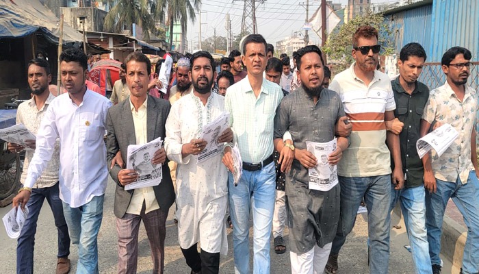 নারায়ণগঞ্জ-৩ বিএনপি মনোনীত প্রার্থী আজহারুল ইসলাম মান্নানের পক্ষে গণসংযোগ ও লিফলেট বিতরণ