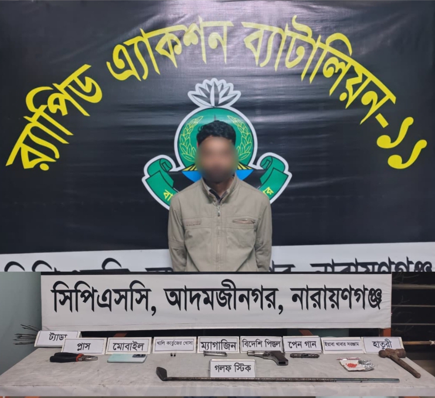 সিদ্ধিরগঞ্জে ভুয়া র্যাব-ডিবি পরিচয়ে চাঁদাবাজি, বিদেশি পিস্তলসহ গ্রেপ্তার ১