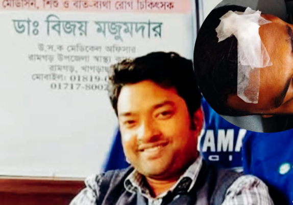 রামগড় উপজেলা স্বাস্থ কমপ্লেক্স এর চিকিৎসক বিজয় মজুমদারের হামলায় সহকর্মী আহত