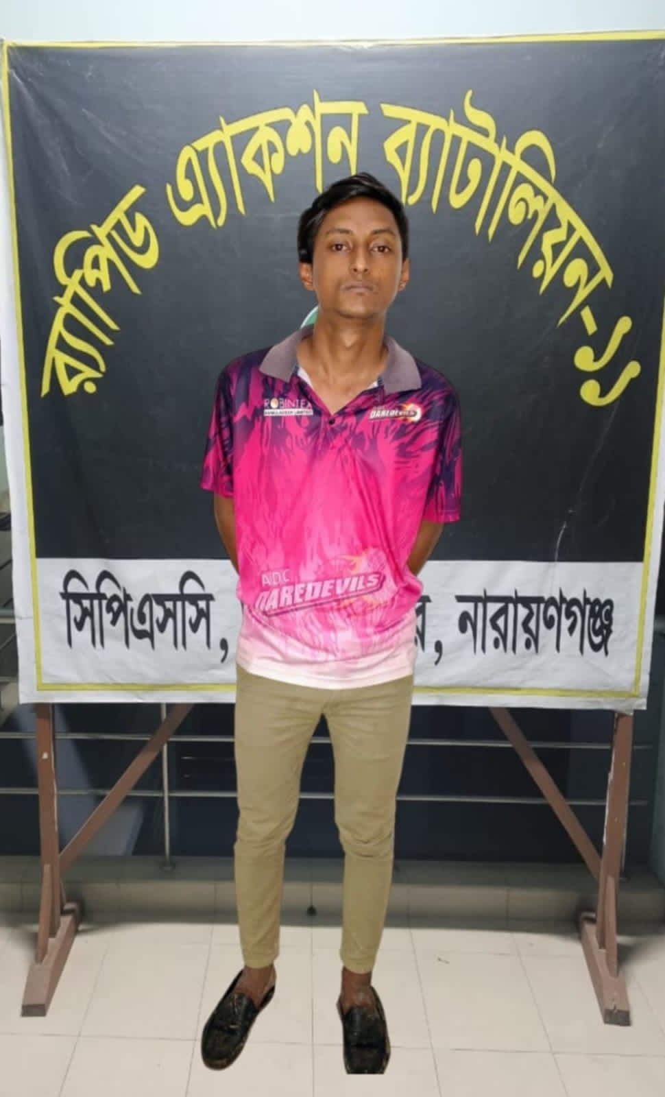 গ্রেফতারকৃত আসামি জাহিদুল ইসলাম বাবু,(২৮) সে নারায়ণগঞ্জের রূপগঞ্জ উপজেলার মর্তুজাবাদ এলাকার মুঞ্জু মিয়ার ছেলে ।
