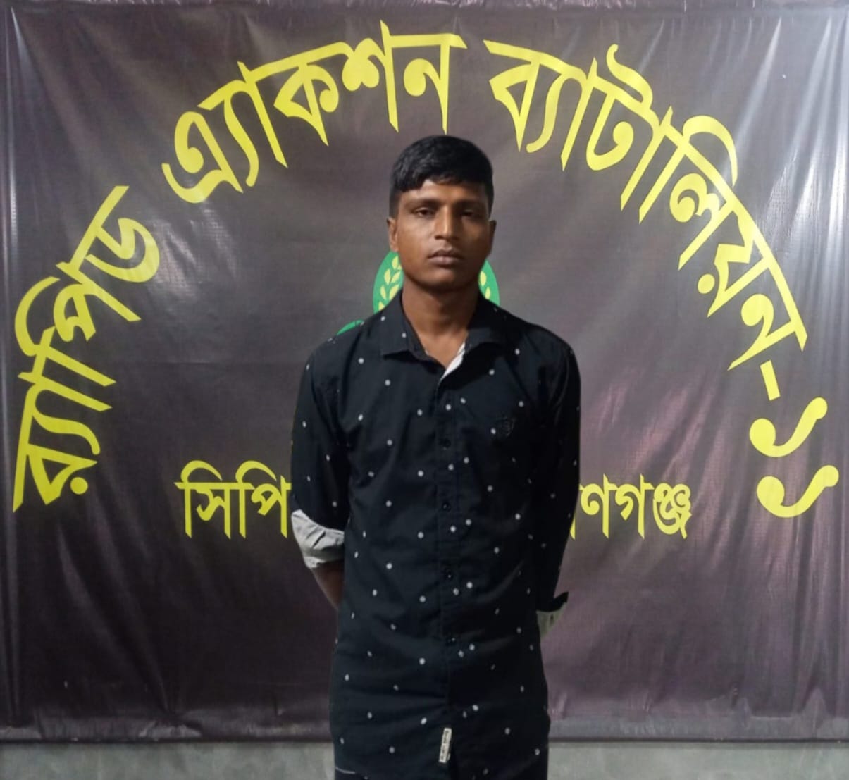 বুধবার (১০ জুলাই ২০২৫ ) দিবাগত রাত সাড়ে বারোটার দিকে তথ্য প্রযুক্তির সহায়তা ও গোপন সংবাদের ভিত্তিতে নারায়ণগঞ্জ জেলার আড়াইহাজার থানাধীন বাগবাড়ী এলাকায় শাহাদাত মিয়ার বাড়ি থেকে মো. রুবেলকে গ্রেফতার করা হয়। তিনি ওই গ্রামের রেহাজ উদ্দিনের ছেলে।
