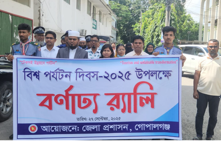 গোপালগঞ্জ প্রতিনিধি: গোপালগঞ্জে যথাযোগ্য মর্যাদায় বিশ্ব পর্যটন দিবস-২০২৫ পালিত হয়েছে। প্রতি বছর ২৭ সেপ্টেম্বর বিশ্বব্যাপী এ দিবসটি উদযাপন করা হয়। এর মূল উদ্দেশ্য হলো পর্যটনের সামাজিক, সাংস্কৃতিক, রাজনৈতিক ও অর্থনৈতিক গুরুত্ব তুলে ধরা এবং এ বিষয়ে জনসচেতনতা সৃষ্টি করা। এ বছরের প্রতিপাদ্য নির্ধারণ করা হয়েছে— “টেকসই উন্নয়নে পর্যটন”, যা পরিবেশবান্ধব ও দীর্ঘমেয়াদি পর্যটন ব্যবস্থার ওপর বিশেষ জোর দিচ্ছে।