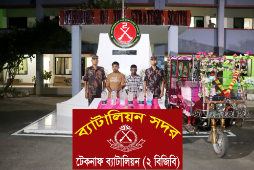 ফরহাদ রহমান,টেকনাফ: কক্সবাজারের টেকনাফে পৃথক দুই অভিযানে বাংলা মদসহ চার মাদক পাচারকারীকে আটক করেছে বর্ডার গার্ড বাংলাদেশ (বিজিবি)। এ সময় মোট ২৮ লিটার বাংলা মদ জব্দ করা হয়।