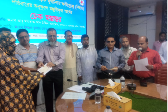 চাঁপাইনবাবগঞ্জে সড়ক দূর্ঘটনায় ক্ষতিগ্রস্ত (নিহত) পরিবারের মাঝে চেক হস্তান্তর