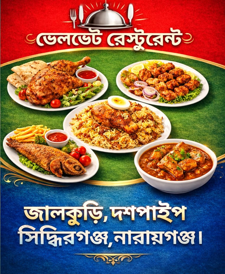 শেখ নিয়াজ মোহাম্মদ মুন্না: নারায়ণগঞ্জের সিদ্ধিরগঞ্জের ৯নং ওয়ার্ডের জালকুড়ি দশ পাইপ এলাকায় গড়ে ওঠা “ভেলভেট রেস্টুরেন্ট” ইতোমধ্যেই এলাকাবাসীর কাছে একটি জনপ্রিয় খাবারের প্রতিষ্ঠানে পরিণত হয়েছে। আধুনিক পরিবেশ, উন্নত মানের খাবার এবং সাশ্রয়ী দামের কারণে প্রতিদিনই এখানে ভিড় জমাচ্ছেন বিভিন্ন শ্রেণি-পেশার মানুষ।