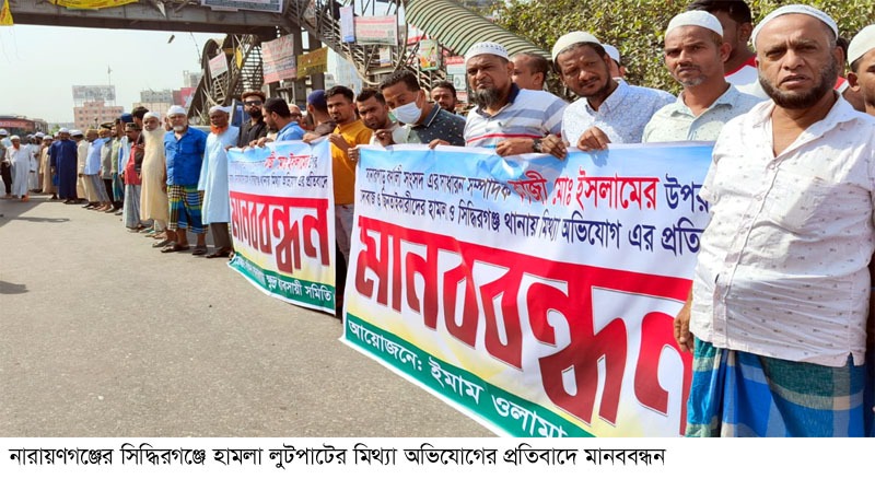 সিদ্ধিরগঞ্জে চুরি ছিনতাই প্রতিরোধের উদ্যোগ নেওয়ায় মিথ্যা অভিযোগের প্রতিবাদে মানববন্ধন বিক্ষোভ
