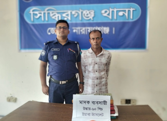 সিদ্ধিরগঞ্জে ৬০ পিস ইয়াবাসহ এক মাদক ব্যবসায়ী গ্রেপ্তার