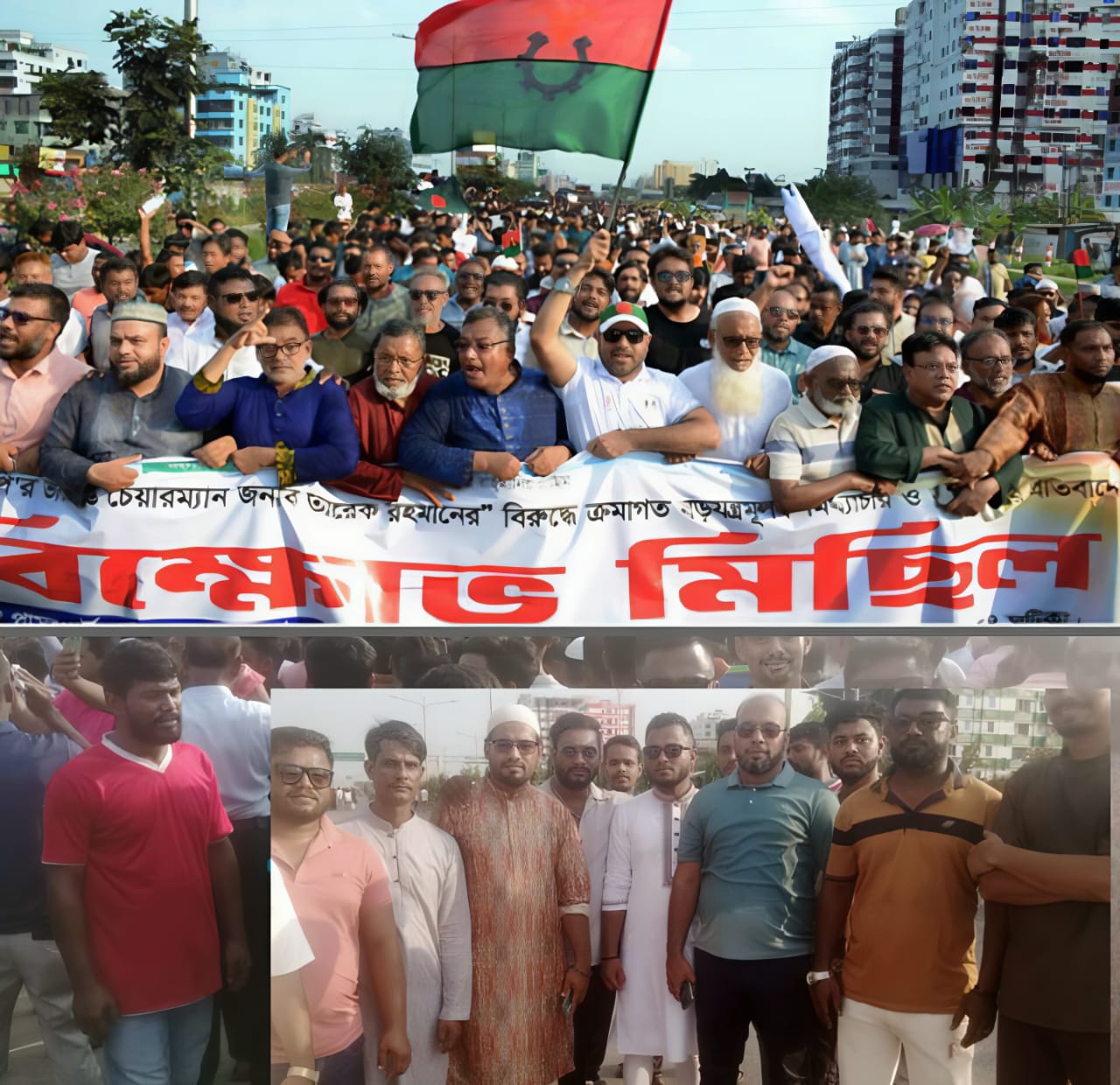সিদ্ধিরগঞ্জ-ফতুল্লা থানা বিএনপির বিক্ষোভ মিছিলে তারেক রহমানের বিরুদ্ধে ষড়যন্ত্রের প্রতিবাদ