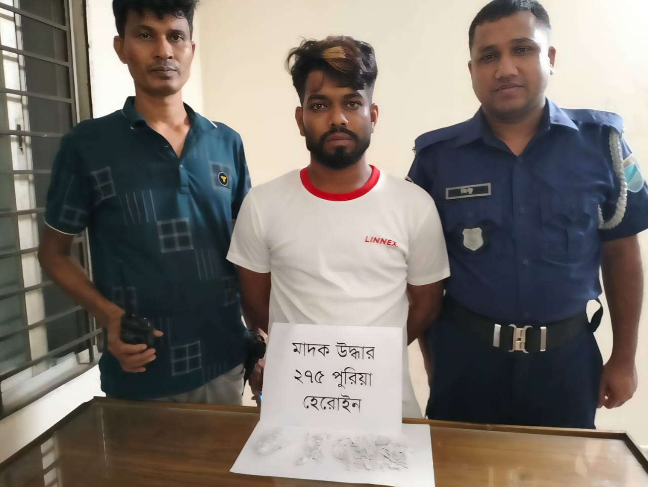 সিদ্ধিরগঞ্জে ২৭৫ পুরিয়া হেরোইনসহ যুবক আটক, পলাতক পিচ্চি মুরাদ একাধিক অস্ত্র-মাদক মামলার আসামি ‎