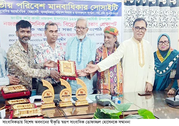 সাংবাদিকতায় বিশেষ অবদানের স্বীকৃতি স্বরূপ সাংবাদিক তোফাজ্জল হোসেনকে সম্মাননা