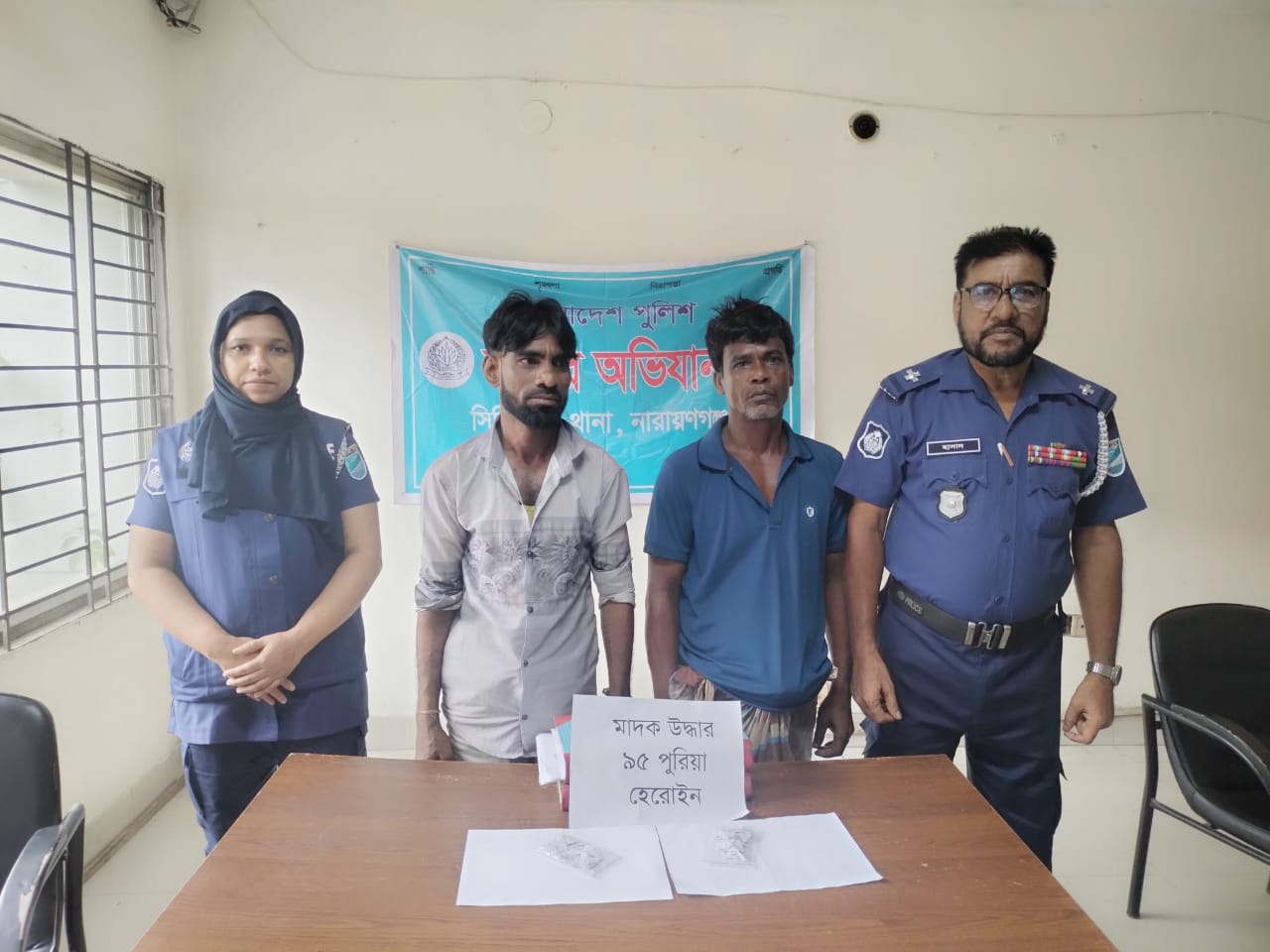 সিদ্ধিরগঞ্জে মাদকের আস্তানায় পুলিশের হানা, ৯৫ পুরিয়া হেরোইনসহ আটক দুই শীর্ষ বিক্রেতা