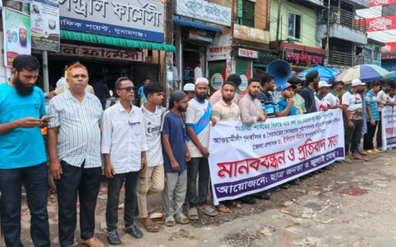 সুনামগঞ্জ জেলা প্রশাসকের অপসারণের দাবীতে ছাত্রজনতার উদ্যোগে মানববন্ধন অনুষ্ঠিত