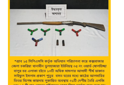 চকরিয়ায় র্যাব-১৫–এর অভিযানে শীর্ষ ডাকাতের ঘর থেকে অস্ত্র-কার্তুজ উদ্ধার