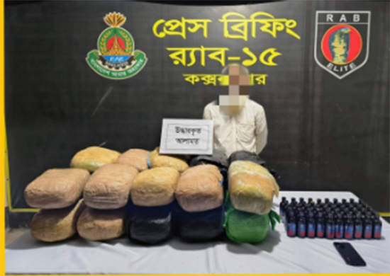 কক্সবাজারে র্যাবের অভিযানে ৪০ কেজি গাঁজা ও ৫০ বোতল ফেন্সিডিলসহ আটক ১