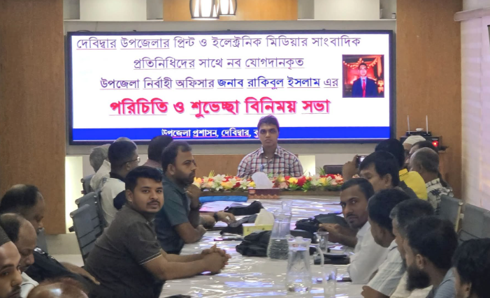 কুমিল্লা প্রতিনিধি: কুমিল্লা দেবিদ্বারে প্রিন্ট ও ইলেকট্রনিক মিডিয়ার সাংবাদিকদের সাথে পরিচিতি সভা ও শুভেচ্ছা বিনিময় করেন নবাগত ইউএনও মো. রাকিবুল ইসলাম,