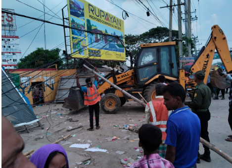 কাঁচপুর হাইওয়ে রাস্তায় যানজট নিরোসনের জন্য দোকান ভাঙচুর ও উচ্ছেদ অভিযান চলছে