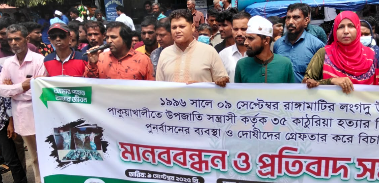বাঙালি ৩৫ জন কাঠুরিয়া হত্যাকাণ্ডের ৩০ বছর পূর্ণ – বিচারের দাবিতে পার্বত্য চট্টগ্রাম নাগরিক পরিষদের মানববন্ধন