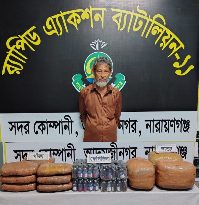 কুমিল্লার দাউদকান্দি থেকে ৯৫ বোতল ফেনসিডিল ও ২৫ কেজি গাঁজাসহ এক ব্যবসায়ী গ্রেপ্তার