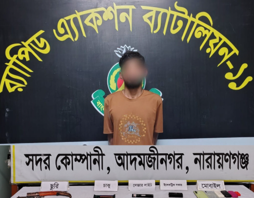 র্যাবের বিশেষ অভিযানে সোনারগাঁওয়ের শীর্ষ সন্ত্রাসী ‘ ব্লেড সজীব’ গ্রেপ্তার