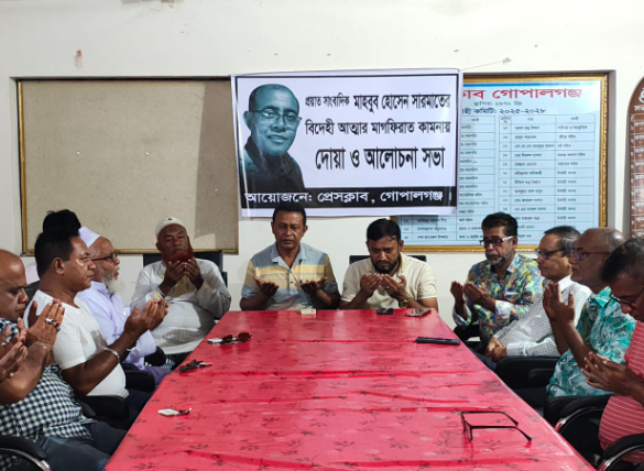 সাংবাদিক মাহবুব হোসেন সারমাতের আত্মার মাগফিরাত কামনায় প্রেসক্লাব গোপালগঞ্জে দোয়া ও আলোচনা সভা