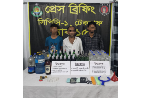 টেকনাফে দেশীয় ও নকল বিদেশি মদসহ তিন মাদক কারবারি গ্রেপ্তার